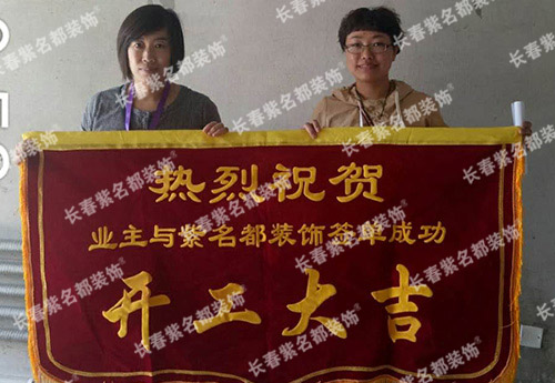 长春紫名都装饰全屋实木定制新整装装修工地开工大吉