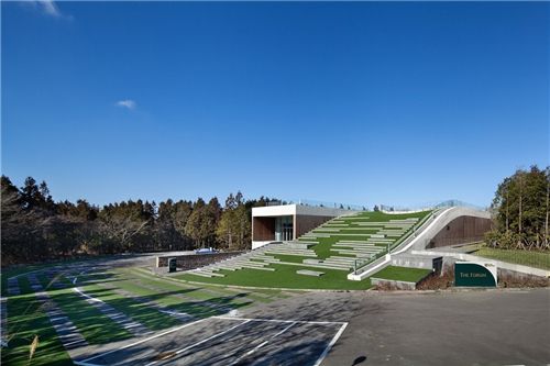 地下空间包括会议室和多功能厅,还可以用来作为一个网球或篮球比赛的体育场。坡屋面花园是从地面倾斜延伸,与停车场无缝融合,人们可以从地面直接走上去。而该建筑的圆形构造,使其也可用作一个圆表演剧场,周围的石椅可以坐300人,草皮地面则提供了户外表演空间。