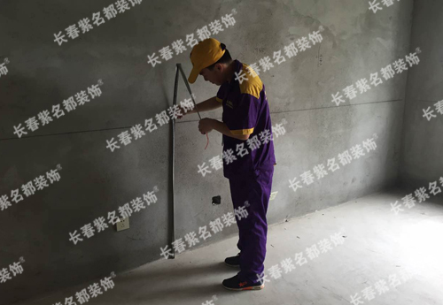 以此同时,工长对空开以及弱电箱的位置以及强、弱点进行了确定,随后工长开始检查卫生间、厨房的开关面板,确定业主家是否是4平方线,只有均是4平线,才能保证日后正常安全的使用。当检测到卧室以及客厅时,发现客厅的线是2.5平的,但是不足2.5,监理以及工长还有设计师对业主强调了一下不足2.5 平线的危害,并交代业主在以后的生活中卧室以及客厅要格外注意用电,不要同时使用大功率的电器,业主当场对紫名都所有工作人员的细心以及把自己视为家人一样的关心深表感谢。