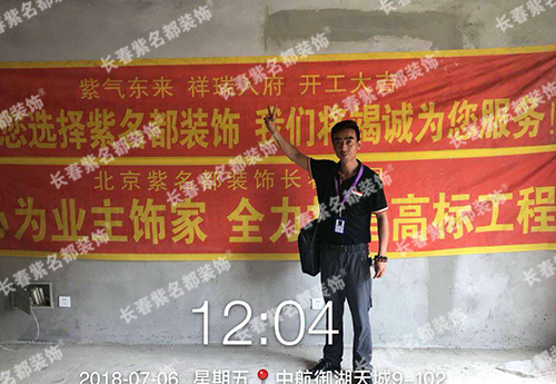 2018年7月6日上午9:00整,长春紫名都装饰设计师曲恒,工长张兆凯,监理叶黎明、业主李女士及工程部唝绘小组如约来到中航御湖天城9-1-102工地(李女士家的新房子)准备进行开工之前免费验房及对各个施工项目进行现场交底。