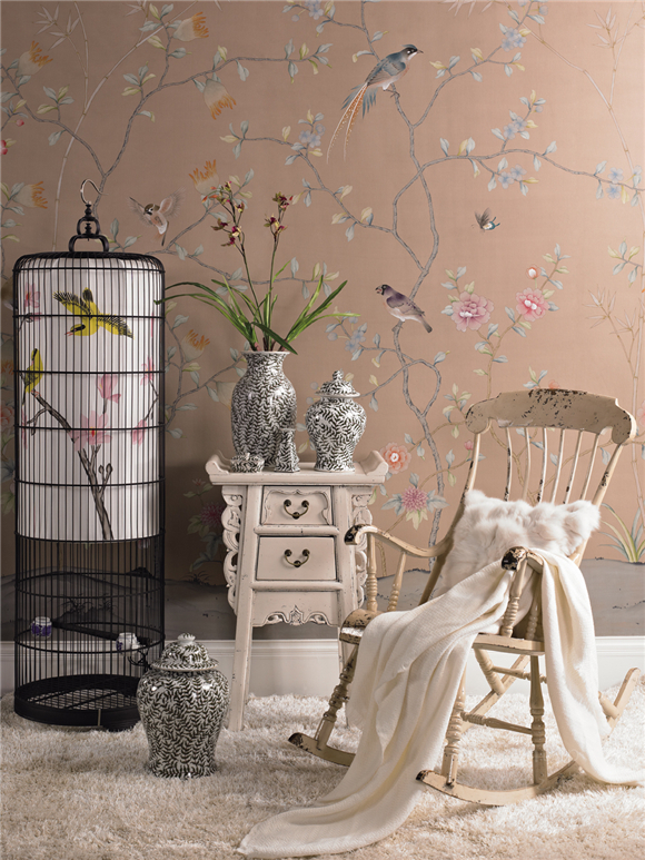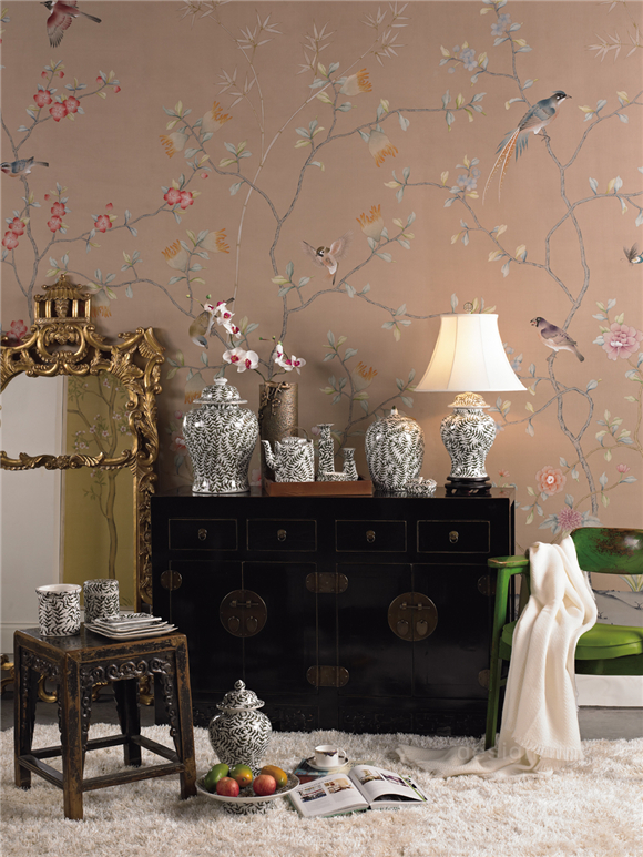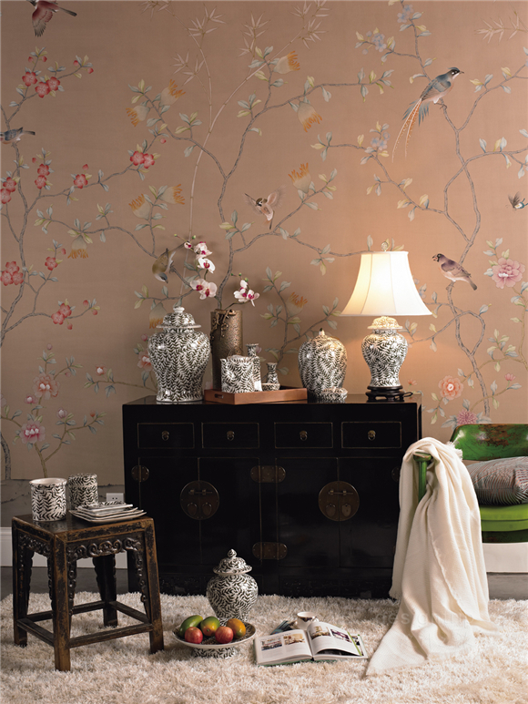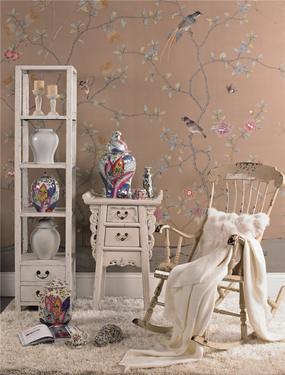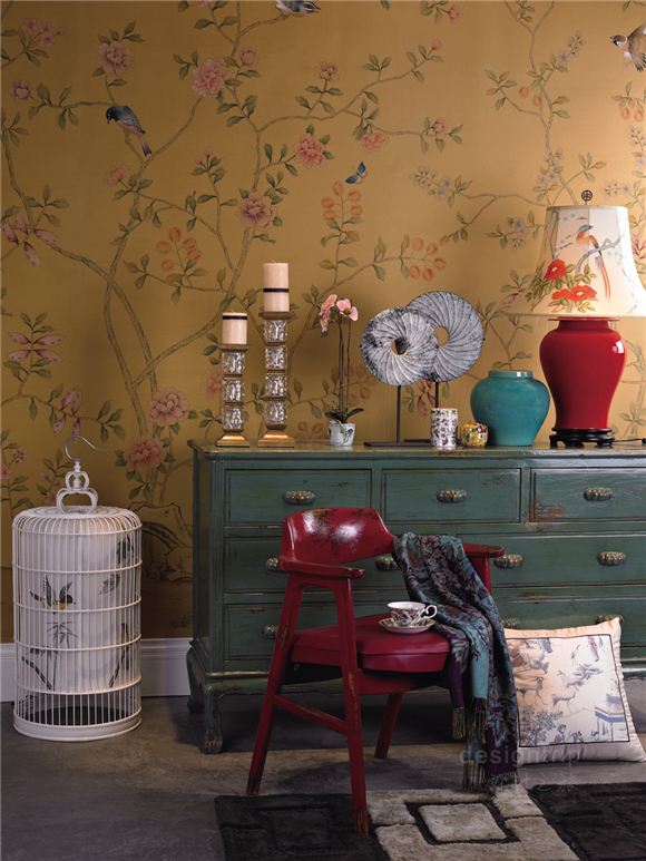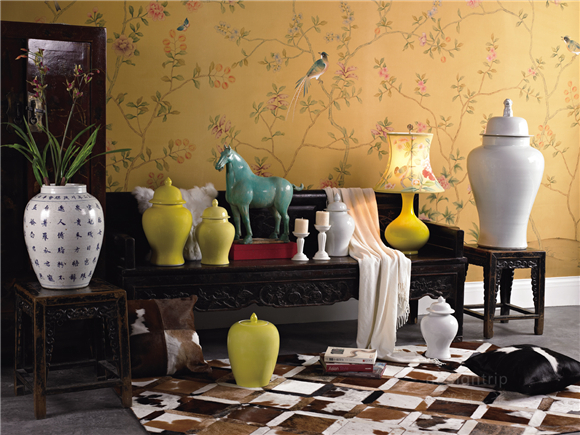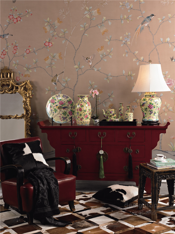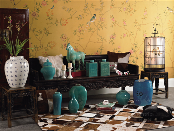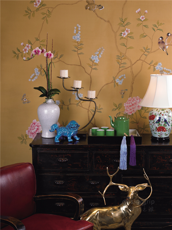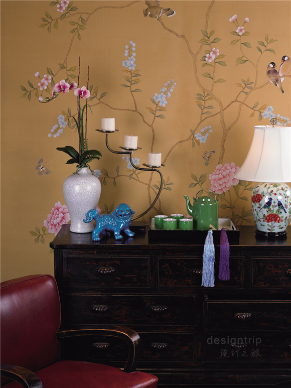 手绘不仅在软装设计方案中经常用到,在软装陈设中也是个非常重要的表达手法,手绘可以在墙面体现,也可以在家具、窗帘、陶瓷等等很多物品上体现,艺术感染力非常强。还可以根据客户的个性需求,量身定制,是个非常好的陈设表达形式。下图中,因空间狭窄,在一面墙上手绘了整幅壁画,视觉上从墙上延伸了出去,达到了开阔视野的效果。