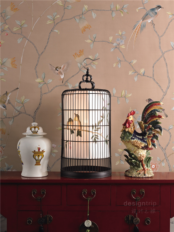 某些空间不仅要满足视觉需求,还要满足听觉需求,电视、音响是常用的表达方式,换个方式,鸟鸣会不会更好一点呢,如图是一个五星级酒店中大堂的一角,铁艺的鸟笼,两只虎皮鹦鹉,别有生趣。