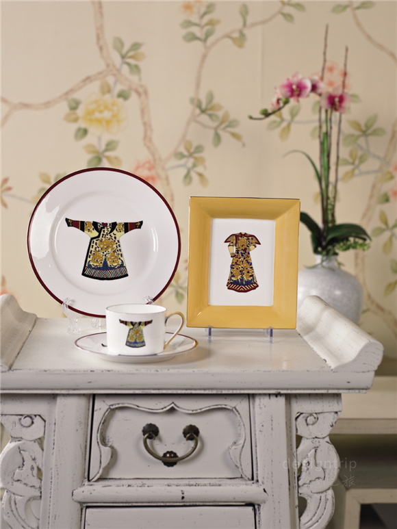 借鉴式指的是把跨行业或跨领域的设计理念巧妙地运用到软装的设计当中,在这个案例中,现代中式的床品就运用了服装设计中的旗袍元素。借鉴的方式可以非常灵活地把不相干的东西运用进来,反而有更突出的视觉效果。